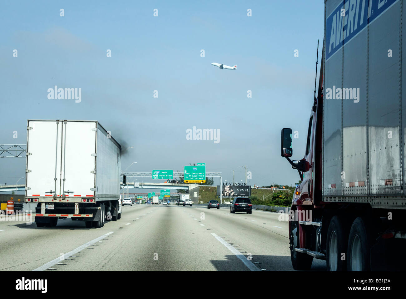 Fort Ft Lauderdale Florida Interstate Highway Route 95 I 95 Traffic Windshield View Trucks Lorries Semi Trailer Truck Departing Airplane Commercial A Stock Photo Alamy